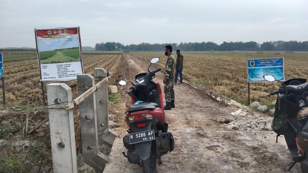 Pati – Untuk memastikan proses perbaikan jalan berjalan sesuai rencana,Babinsa Serda Jamroni angota Kodim 0718/Pati tinjau langsung persiapan pengecoran jalan, tepatnya di lingkungan di Desa Tamansari,Kecamatan Jaken, Kabupaten Pati.Selasa (15/06/2021).