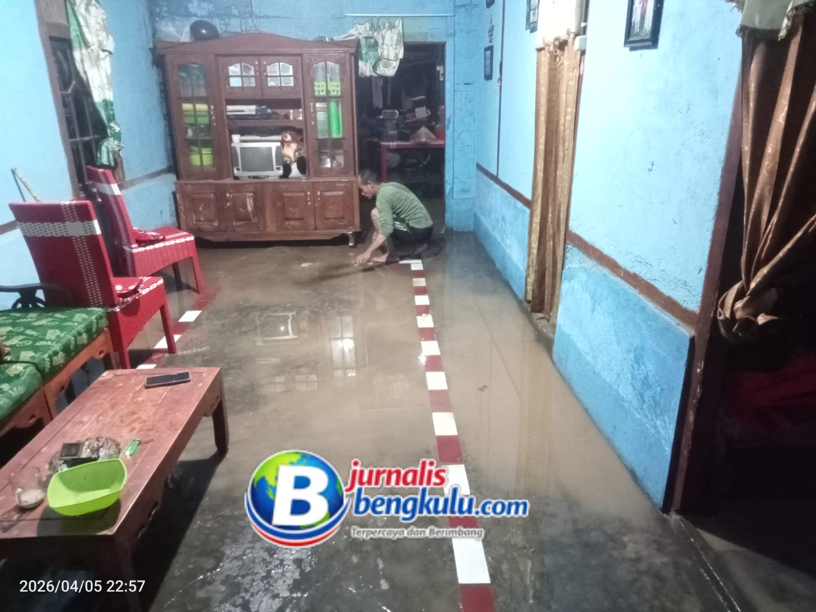 Lumpur sisa banjir juga tampak memenuhi lantai dan lingkungan sekitar, sehingga warga harus bekerja ekstra membersihkan tempat tinggal mereka.