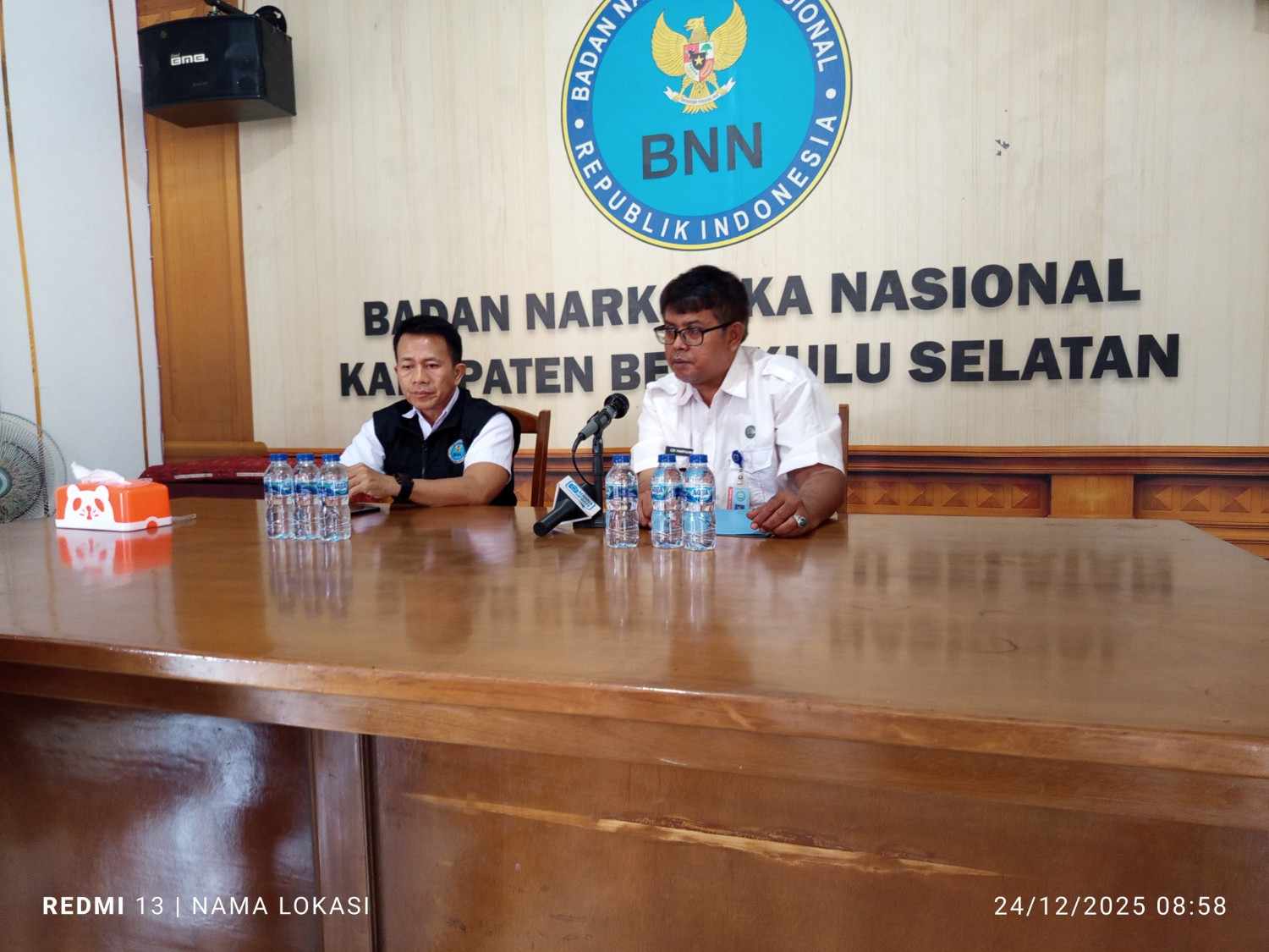Bengkulu Selatan, Jurnalisbengkulu.com – Badan Narkotika Nasional Kabupaten Bengkulu Selatan (BNNK Bengkulu Selatan) menggelar press rilis akhir tahun 2025 sebagai bentuk pertanggungjawaban publik atas pelaksanaan tugas, fungsi, serta capaian kinerja sepanjang tahun 2025. Kegiatan ini berlangsung pada Rabu, 24 Desember 2025, bertempat di Aula Kantor BNNK Bengkulu Selatan, Jalan Kolonel Berlian, Kecamatan Kota Manna, Kabupaten Bengkulu Selatan, Provinsi Bengkulu.