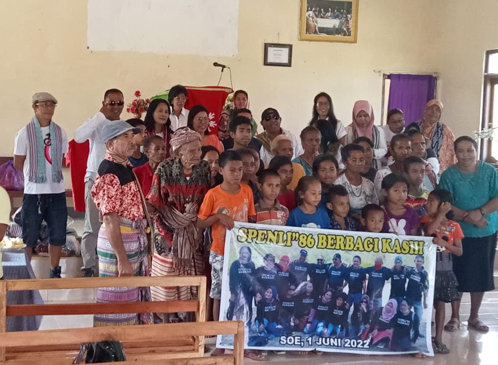 “Salah satu cara berkunjung dan berbagi kasih dalam momentum Hari Kelahiran Pancasila, kami alumni SPENLI 86 Kupang memberikan bantuan sembako untuk membantu para penderita kusta dalam pengobatan, para janda dan anak yatim di Desa Nusa, Amanuban Barat,”jelasnya.