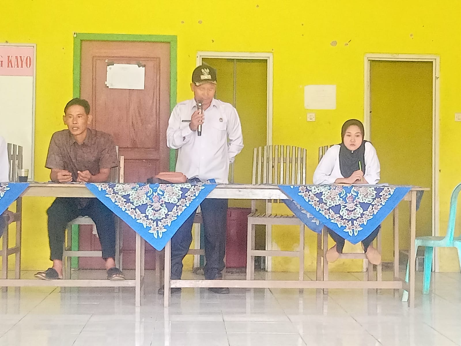 Sambutan kedua di wakili oleh ketua BPD Desa Gunung Kayo Miprodi. Dalam sambutannya Miprodi mengharapkan kepada seluruh penerima beasiswa agar mengurangi waktu dalam bermain handphone, hal ini di harapkan agar para siswa bisa belajar lebih banyak dengan menggunakan materi yang ada di buku.