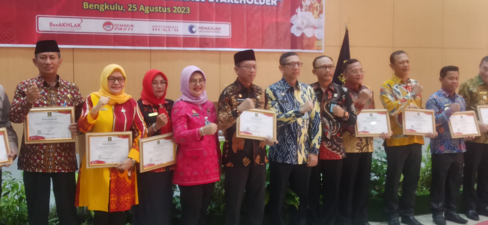 Pemerintah Provinsi (Pemprov) Bengkulu menerima Piagam Penghargaan dari Kantor Wilayah Kementerian Hukum dan Hak Asasi Manusia atas dedikasinya tersebut, di Hotel Gerage Anggut Bengkulu, Jumat (25/08/23)