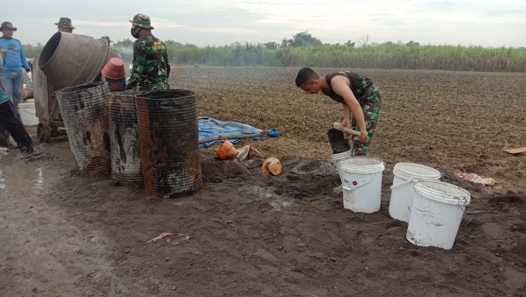 Molen terus berputar menunggu menuang adukan, lanjut material yang sudah antri siap memasukan ke mesin pengaduk, semangat tanpa mengenal rasa lelah, bagi TNI dan masyarakat Desa Tamansari, tidak ada kata menyerah, maju terus sebelum keberhasilan itu diraih, sesuai target yang diinginkan bersama, tetap berusaha memberikan yang terbaik demi kesuksesan TMMD Reguler ke-111 ini.