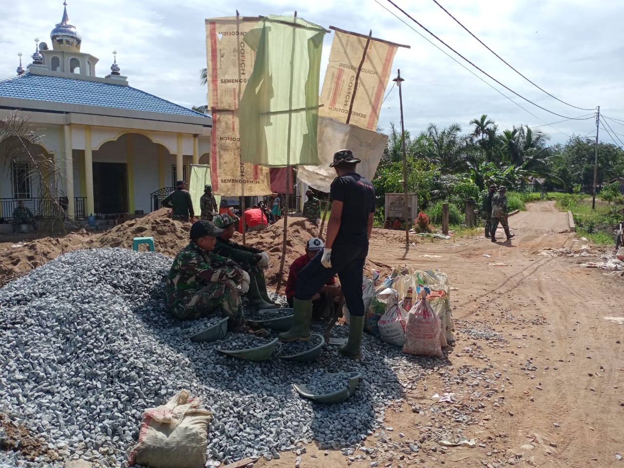 Kubu Raya – Cuaca panas saat pelaksanaan TMMD ke-111 Kodim 1207/Pontianak di Desa Kuala Mandor B, Kecamatan Kuala Mandor B, Kabupaten Kubu Raya, tidak menyurutkan semangat anggota satgas dan masyarakat setempat yang sedang bekerja, Jumat (09/07/2021).