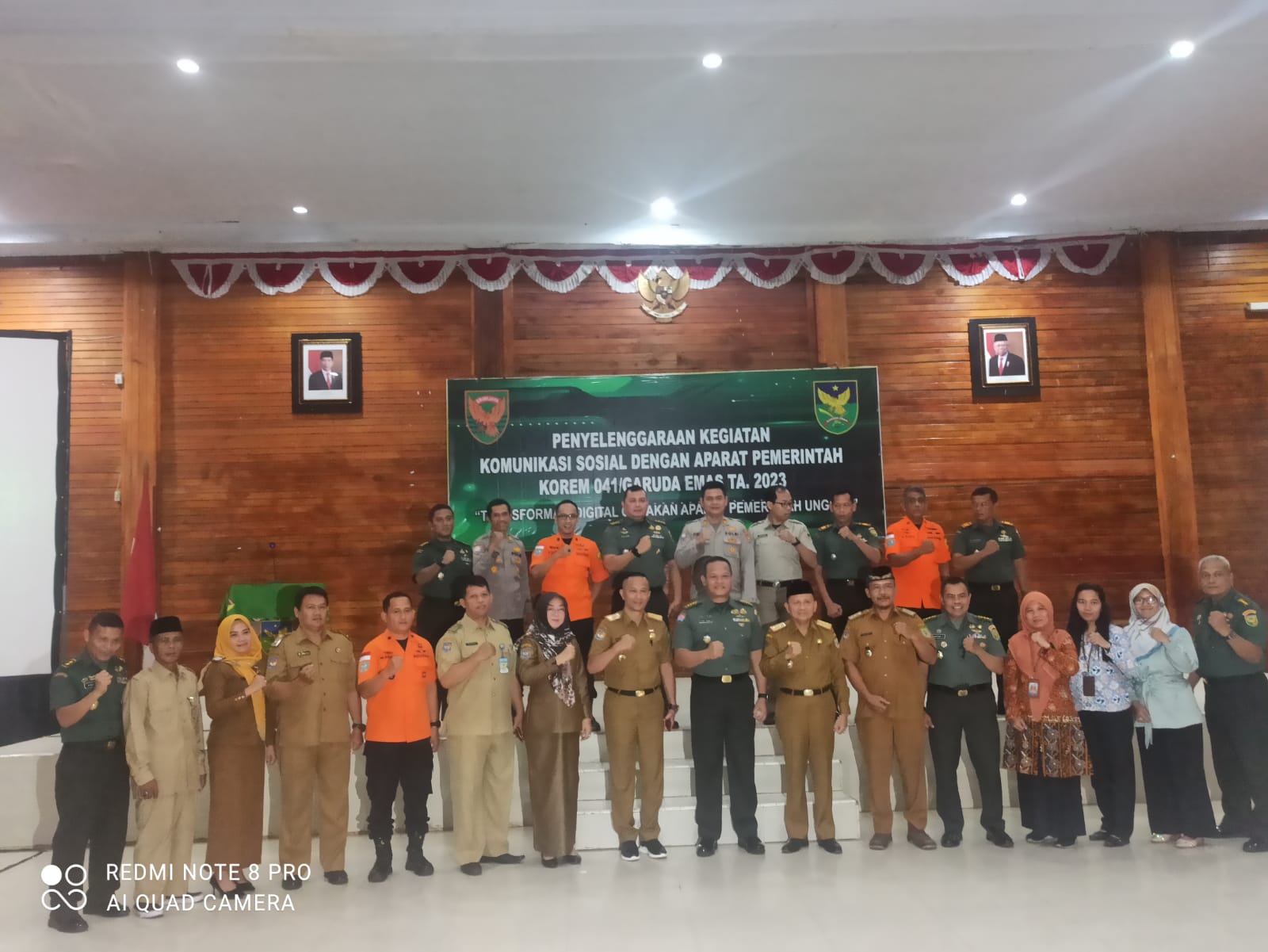 Bengkulu, jurnalisbengkulu.com – KOREM 041/ Garuda Emas menyelenggarakan kegiatan komunikasi sosial dengan aparat pemerintah TA. 2023, Selasa (13/6), di Gedung Balai Prajurit, Padang Harapan, Kec. Gading Cempaka Kota Bengkulu. Dengan tema “Transformasi Digital Ciptakan Aparat Pemerintah Unggul”.