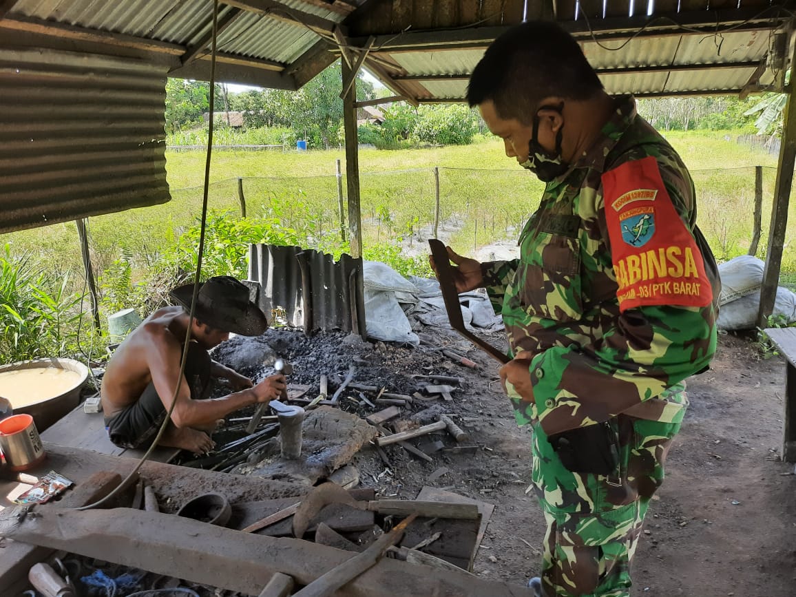 Kubu Raya – Satgas TMMD datangi pengrajin alat pertanian di lokasi TMMD ke-111 Kodim 1207/Pontianak yang berada di Dusun Maju Jaya, Desa Kuala Mandor B, Kecamatan Kuala Mandor B, Kabupaten Kubu Raya, Jumat (09/07/2021).