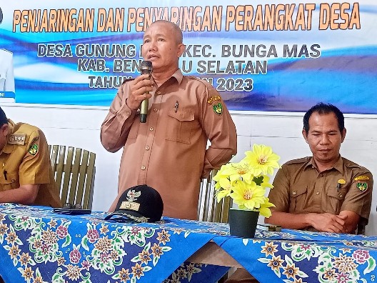 Bengkulu Selatan, jurnalisbengkulu.com – Dalam rangka mengisi kekosongan jabatan di ruang lingkup Pemerintahan, Pemerintah Desa Gunung Kayo melakukan seleksi penerimaan penjaringan dan penyaringan perangkat Desa yang akan menduduki jabatan di bidang Kasi Pelayanan, Selasa (30/05/2023).