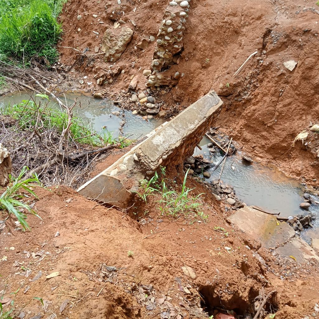 Jalan tersebut juga sempat diperbaiki namun sejak beberapa waktu lalu putus total karena gorong-gorong di bawah jalan itu tidak lagi mampu menampung debit air.”Pernah diperbaiki, namun rusak kembali dan saat ini malah putus total sehingga warga yang mau lewat harus memutar terlebih dahulu,” ucap warga.