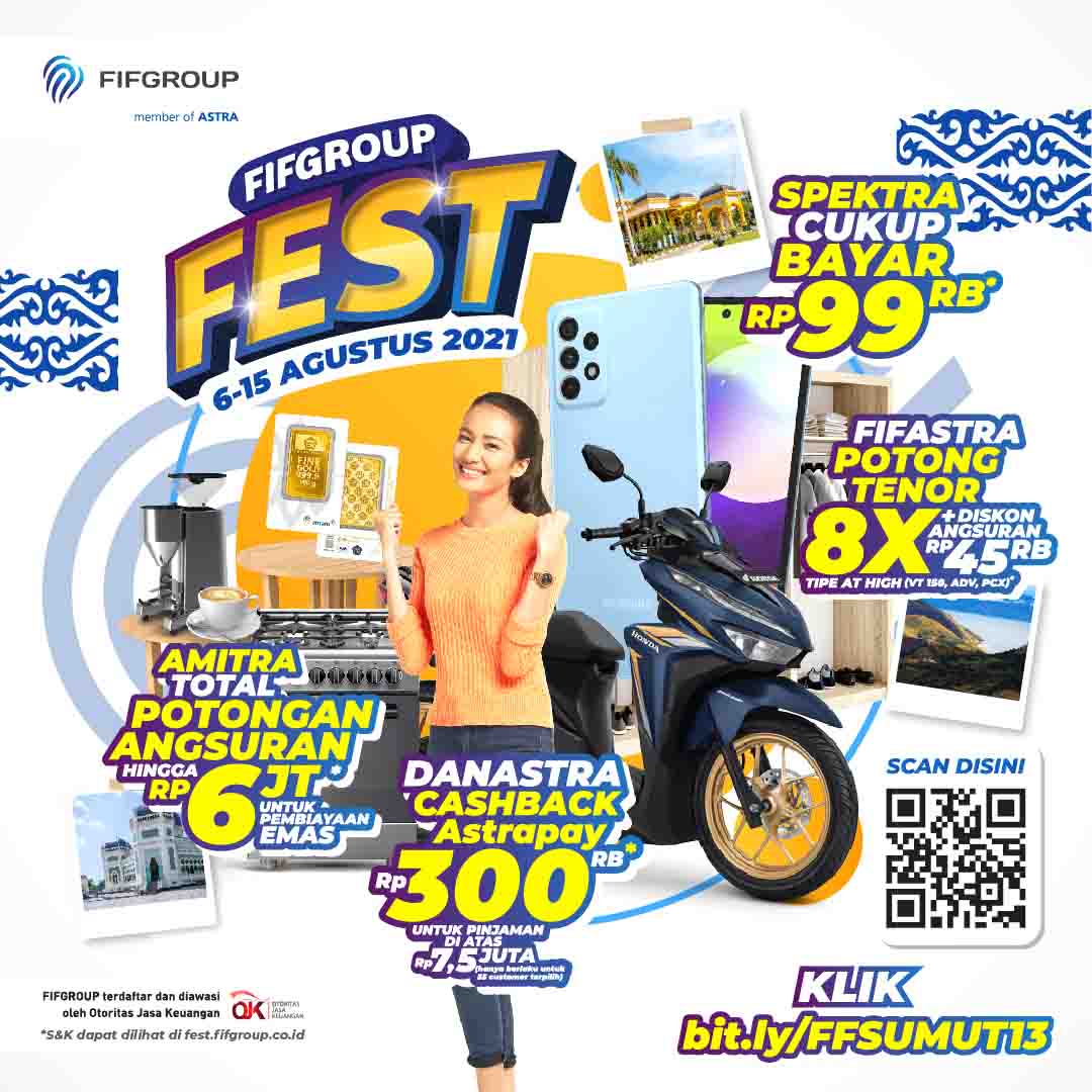 Sumatera Utara, jurnalisbengkulu.com –Mengawali bulan Agustus, kegiatan pameran virtual bulanan yang diadakan oleh PT Federal International Finance (FIFGROUP), yaitu FIFGROUP Festival (FIFGROUP FEST), kembali hadir khusus untuk warga Sumatera Utara. Selain bertabur promo menarik, melalui kegiatan tebar promo ini, warga Sumatera Utara juga disuguhkan dengan hadiah-hadiah spesial yang sangat menguntungkan.