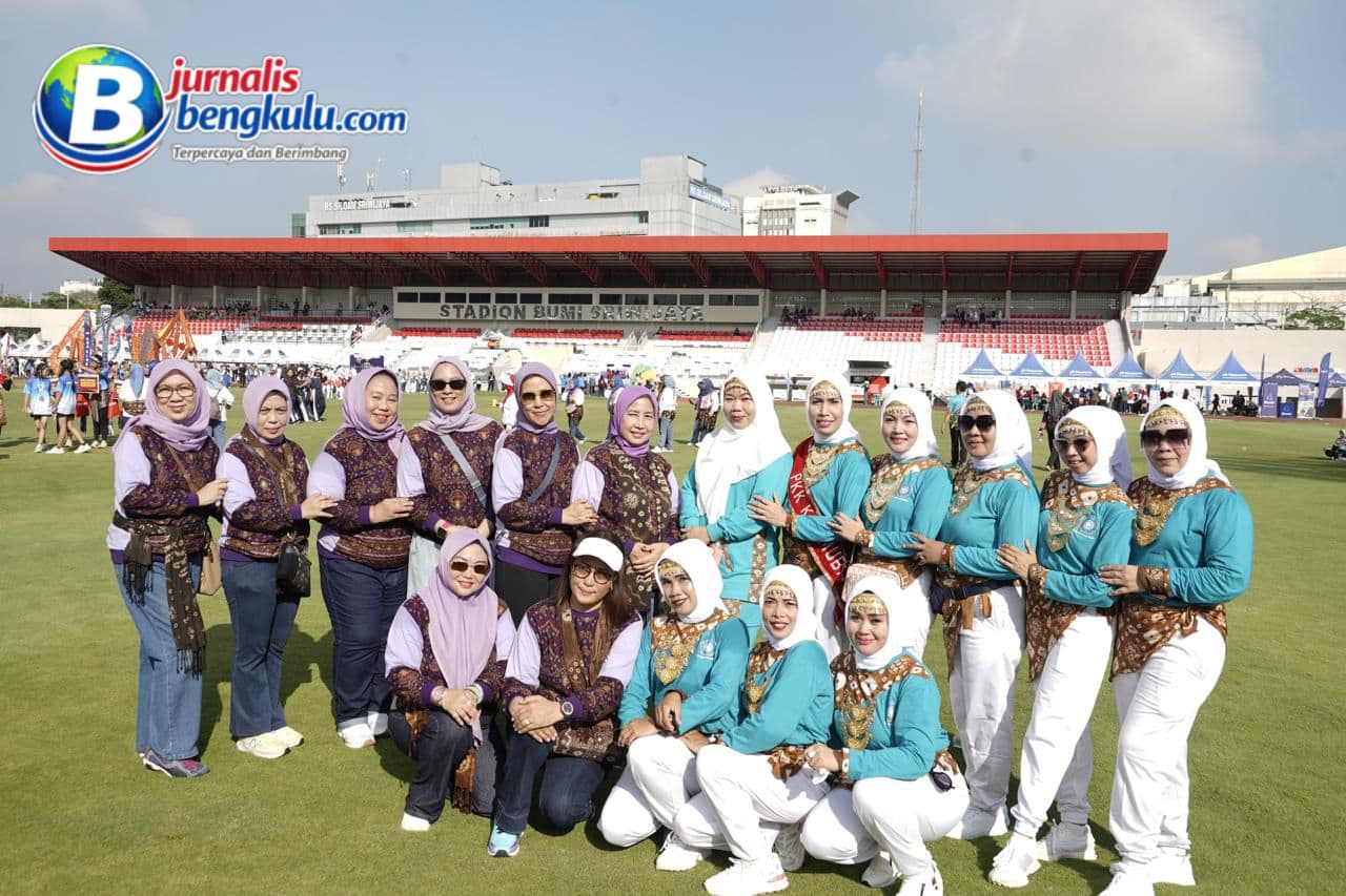 Palembang, Jurnalisbengkulu.com – Di tengah gemuruh semangat Senam Kreasi Sriwijaya (KRIYA) 2026, Staf Ahli TP PKK Muba Liliyani Abdur Rohman Husen bersama Ketua DWP Muba Siti Fatimah Syafarudin tampil mencuri perhatian. Keduanya tampak antusias mengikuti setiap rangkaian gerakan, membaur harmonis bersama ribuan peserta yang memadati lokasi kegiatan.