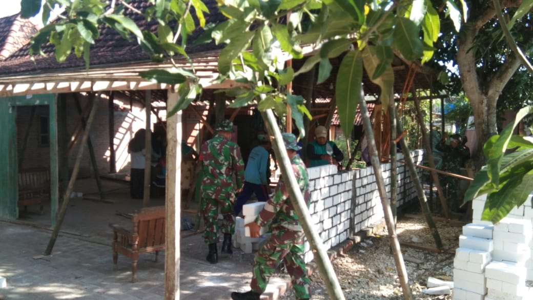 Pati – Dengan Program Tentara Manunggal Membangun Desa (TMMD) yang di selenggarakan Kodim 0718/Pati yang salah satunya renofasi Rumah Tidak Layak seperti halnya yang terjadi pada rumah Bapak Yono Warga Desa Tambahsari Kec.Jaken Kab.Pati yang merupakan salah satu dari 16 Unit Rumah yang mendpatkan program RTLH kelihatan kesibukan dan ramai suasana disaat para Anggota Satgas TMMD beserta masyarakat Huni(RTLH)..(Jumat,11/06/2021).