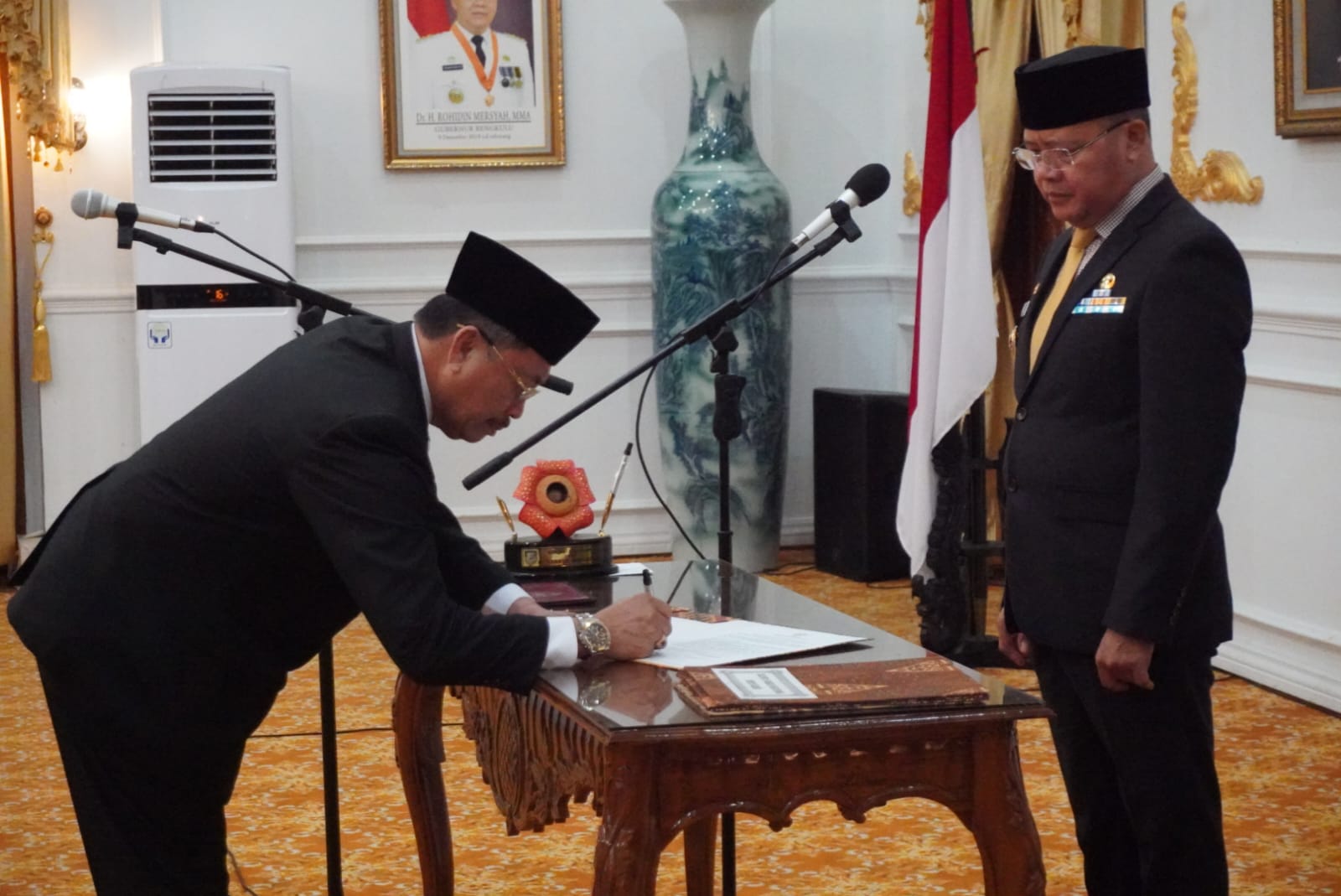 Bengkulu, jurnalisbengkulu.com – Gubernur Bengkulu Rohidin Mersyah resmi melantik Asisten III Setda Provinsi Bengkulu Nandar Munadi sebagai Penjabat (Pj) Sekretaris Daerah (Sekda) Provinsi Bengkulu serta 2 Pejabat Pimpinan Tinggi Pratama di lingkungan Pemerintah Provinsi (Pemprov) Bengkulu, di Balai Raya Semarak Bengkulu, Jumat (15/09).