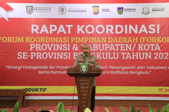 BENGKULU, jurnalisbengkulu.com – Untuk mempercepat pencapaian target vaksinasi di Provinsi Bengkulu, hari ini ( 18/01/22 ) Seluruh Unsur Forkopimda Provinsi Bengkulu serta unsur FKPD Kabupaten/kota se Provinsi Bengkulu menggelar Rapat Koordinasi yang bertempat di Balai Semarak Bengkulu.