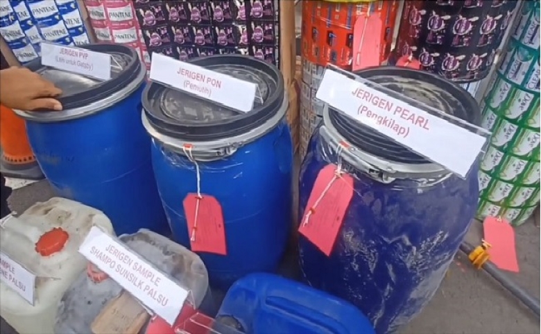 Sementara itu, HL, pemilik pabrik sampo palsu itu mengaku menggunakan bahan baku seperti soda api, alkohol 96 persen, lem, bahan pengawet, pewarna makanan, dan kemasan sampo dicetak sendiri.