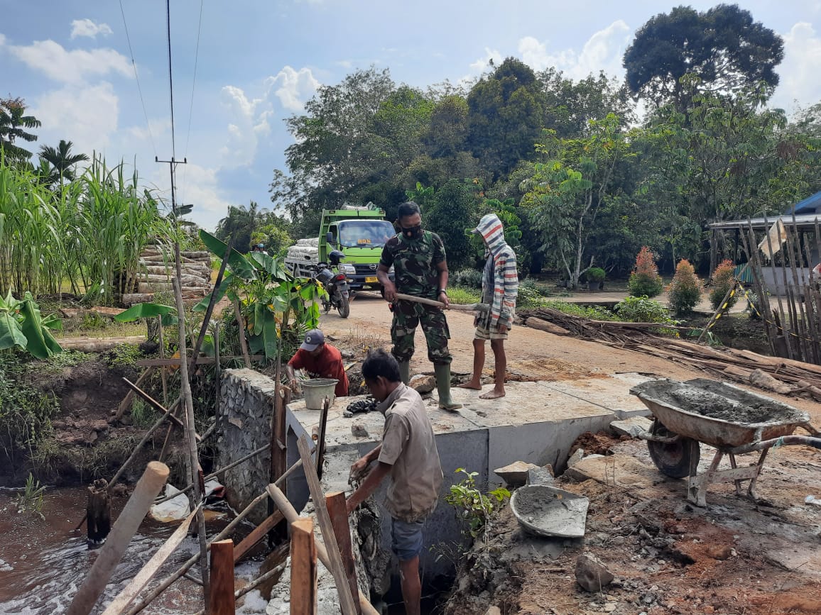 Usaha babinsa Koramil 1207-06/Sungai Ambawang ini tak sia-sia setelah bergotong royong dengan warga setempat, kini jalan tersebut bisa dilalui kendaraan.