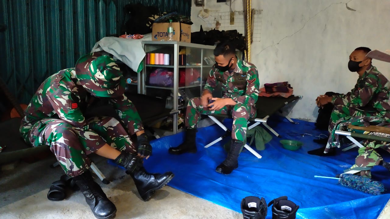 Saat menyambangi tempat istirahat para anggota satgas TMMD di rumah Siti Fadilah RT.03/02 yang ditempati oleh 10 orang personel dari Batalyon Arhanudse 15 terlihat tempat tidur (vellbet) berjajar memenuhi seisi rumah.Rabu,(16/06/2021).