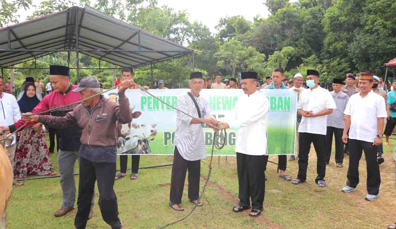 Dalam perayaan idul adha 1443 H tahun ini , Kapolda Bengkulu menyerahkan hewan kurban yakni sapi Limosin seberat 900 kilogram kepada panitia yang melakukan pemotongan hewan kurban Mako Sat Brimobda Bengkulu.