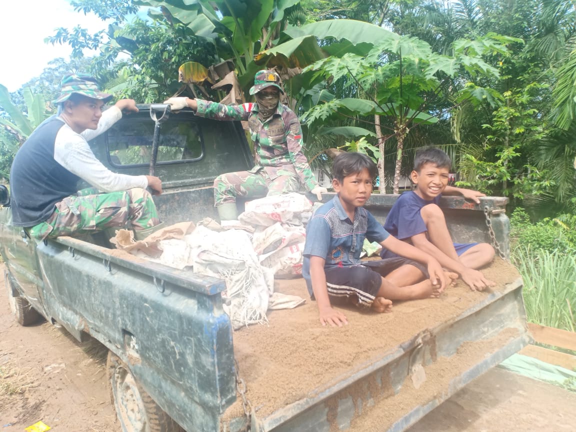 Kubu Raya – Jika awalnya takut, dipertengahan pelaksanaan TMMD ke-111 Kodim 1207/Pontianak, anak-anak di Desa Kuala Mandor B, Kecamatan Kuala Mandor B, semakin akrab dengan para TNI anggota satgas TMMD. Bahkan belakangan ini, menjadi hobi baru anak-anak di desa sasaran TMMD ke-111, yakni selalu menempatkan diri untuk bisa naik kendaraan dinas milik TNI, Minggu (11/07/2021).