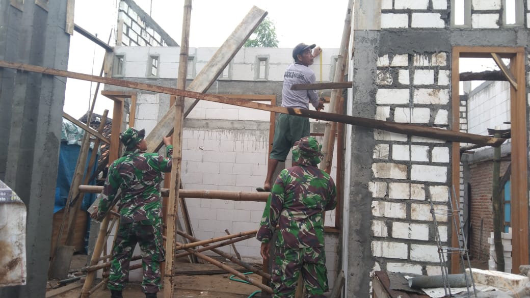 Ia menuturkan dengan bantuan tenaga dari TNI semakin mempercepat rehab rumah miliknya. “Dapat bantuan tenaga dua orang pak TNI lumayan pak mengurangi ongkos tukang,”sambung Sapari.