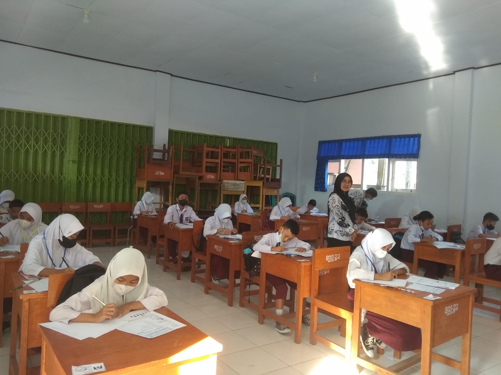 Mengingat masa pandemi yang belum berakhir peserta ujian yang terdiri dari 95 orang siswa Ujian dilaksanakan dengan mengikuti Protokol kesehatan dengan , mengukur suhu tubuh dan mencuci tangan.