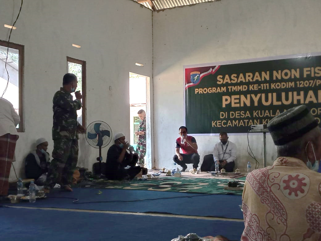 Kegiatan penyuluhan tersebut merupakan salah satu sasaran kegiatan non fisik selain dari sasaran fisik berupa membangun jalan di Dusun Maju Jaya, Desa Kuala Mandor B, Kecamatan Kuala Mandor B, Kabupaten Kubu Raya, dalam rangka kegiatan TMMD ke-111 Kodim 1207/Pontianak. Hal ini diharapkan masyarakat paham dan mengerti tentang hak dan kewajiban sebagai warga negara dalam keikutsertaan didalam membela dan mempertahankan NKRI.