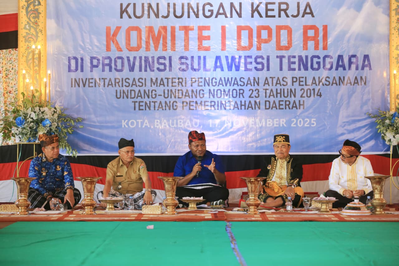 Baubau, Jurnalisbengkulu.com — Komite I DPD RI melakukan kunjungan kerja ke Kota Baubau, Senin (17/11/2025), untuk menyerap aspirasi pemerintah daerah, lembaga adat, dan akademisi terkait implementasi UU 23/2014 serta dinamika baru akibat lahirnya sejumlah regulasi seperti UU Cipta Kerja dan UU HKPD.