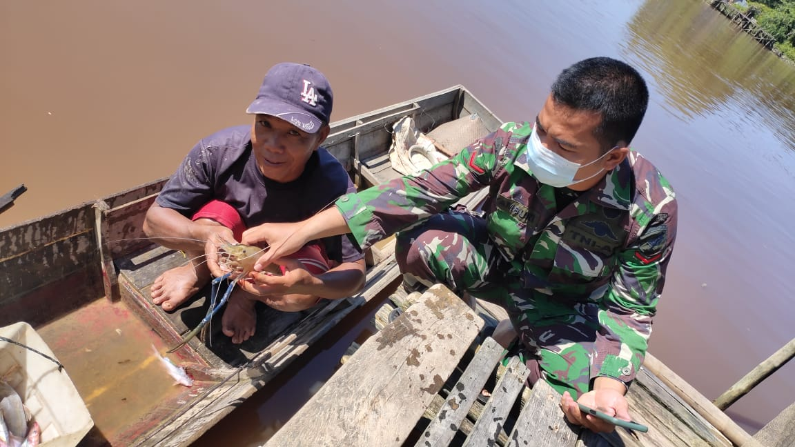 Kubu Raya – Anggota Kodim 1207/Pontianak yang tergabung dalam satgas TMMD ke-111 Kodim 1207/Pontianak (Kopda Samsuri) di Dusun Maju Jaya, Desa Kuala Mandor B, Kecamatan Kuala Mandor B, Kabupaten Kubu Raya, disela-sela mengerjakan sasaran fisik selepas bekerja menyempatkan diri untuk membantu warga yang sedang menangkap ikan dengan bubu alat penangkap ikan tradisional, Sabtu (10/07/2021).