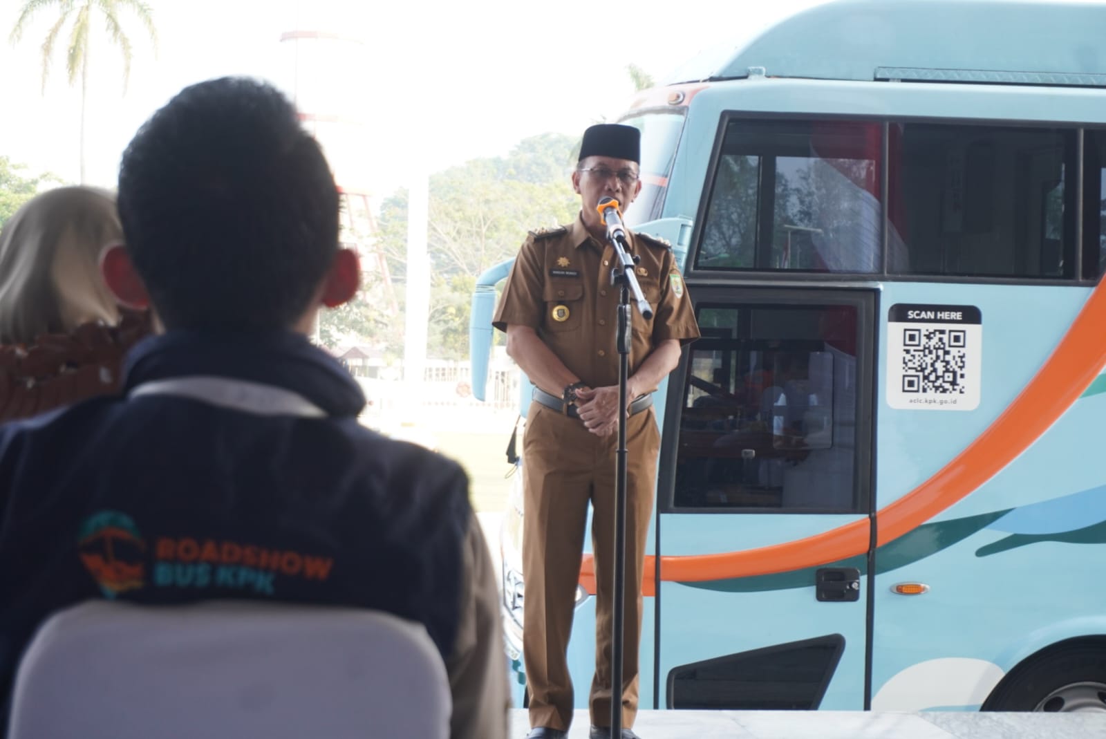 Tampak hadir dalam kesempatan itu, Inspektur Provinsi Bengkulu Heru Susanto, beberapa perwakilan dinas dan tim Roadshow Bus KPK RI. (Adv/08)