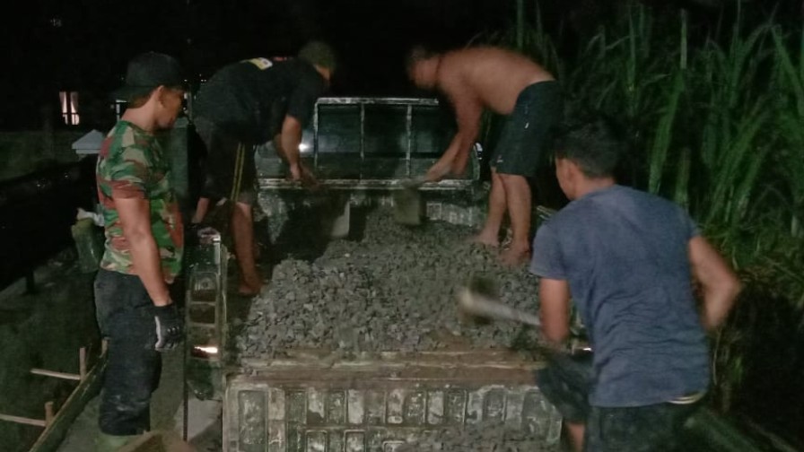 Malam Tak Menghalangi Semangat Satgas TMMD Ke-111 Kodim 1207/Pontianak Dalam Bekerja