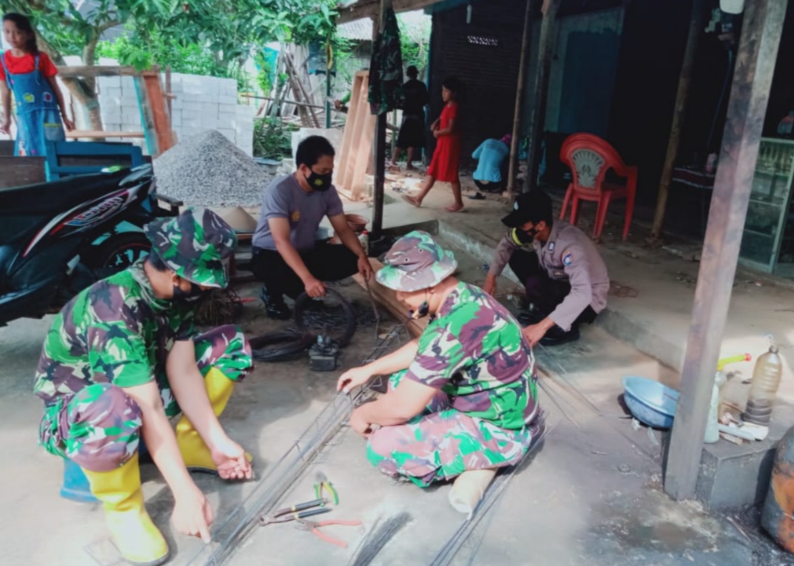 Pati – Guna mendukung program renovasi Rumah Tidak Layak Huni (RTLH) dari Kodim 0718/Pati melalui gelaran TMMD Reguler ke-111 tahun 2021, Babinsa dan Bhabinkamtibmas bersinergi dilokasi renovasi RTLH ikut berbaur warga masyarakat setempat, Minggu (20/6/2021)