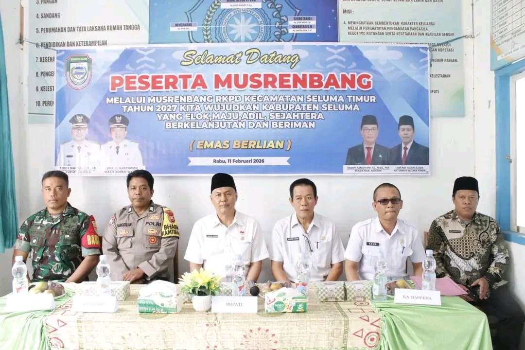 Seluma, Jurnalisbengkulu.com – Pemerintah Kabupaten Seluma menggelar Musyawarah Rencana Pembangunan (Musrenbang) tingkat Kecamatan Seluma Timur sebagai langkah strategis dalam menyusun prioritas pembangunan daerah tahun 2027. Kegiatan ini berlangsung di Aula Kantor Camat Seluma Timur, Rabu (11/2/2026).