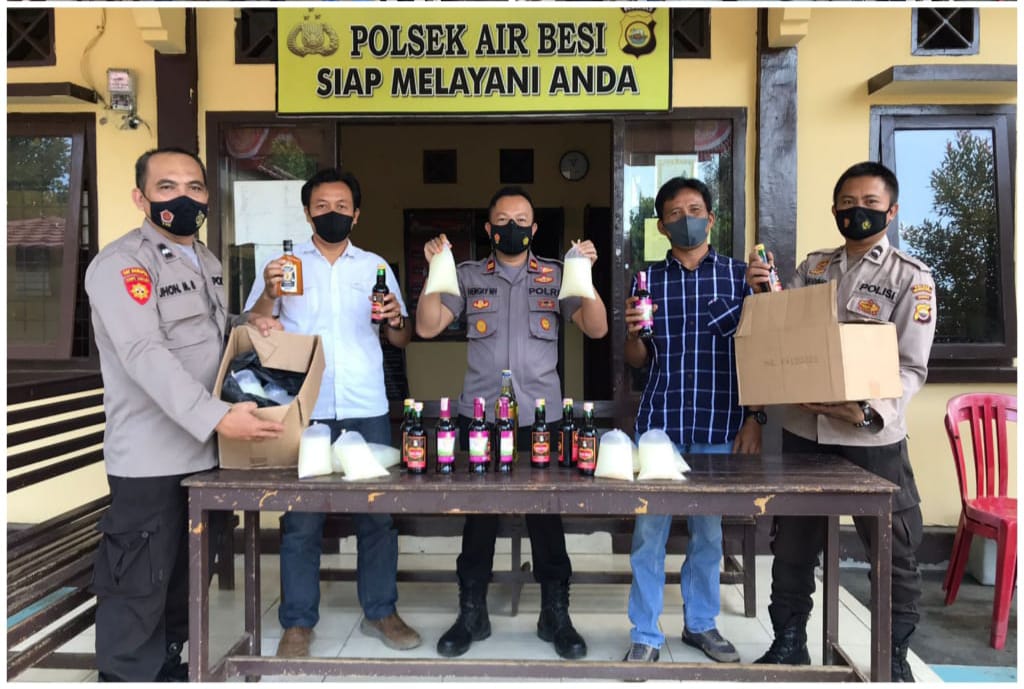 Kapolsek Air Besi menjelaskan, razia yang digelar hari Rabu tanggal 06 Maret 2022 mulai pukul 09.30 tersebut pihaknya berhasil menyita sebanyak 20 Liter tuak, 3 Botol Anggur merah, 6 Botol Malaga, 1 Botol Newport, Serta 1 Botol Mansion yang disita dari tiga orang warga Kecamatan tanjung Agung palik dan kecamatan air napal.