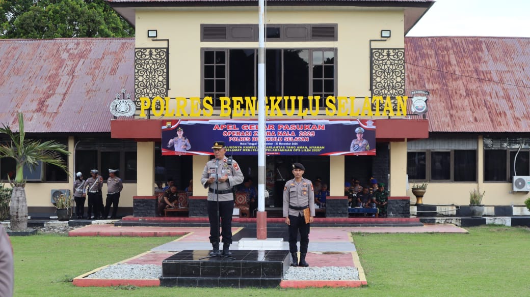Bengkulu Selatan, Jurnalisbengkulu.com – Ops Zebra Nala 2025 ditandai dengan pelaksanaan upacara gelar pasukan yang dilaksanakan di lapangan Mako Polres Bengkulu Selatan pada Senin 17 November 2025.