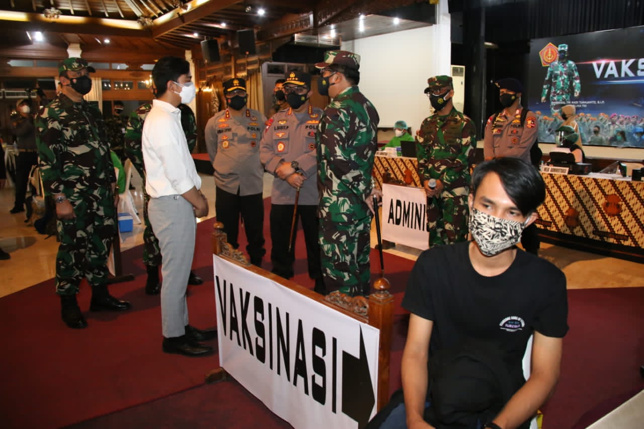 Solo, Jurnalisbengkulu.com – Panglima TNI Marsekal Hadi Tjahjanto bersama Kapolri Jenderal Polisi Listyo Sigit Prabowo meninjau serbuan vaksinasi di Solo, Jawa Tengah, Jumat (9/7/2021). Lokasi pertama yang disambangi Gedung Perkumpulan Masyarakat Solo (PMS) dan yang kedua Gedung Wanita Sarana Krida Kusuma.