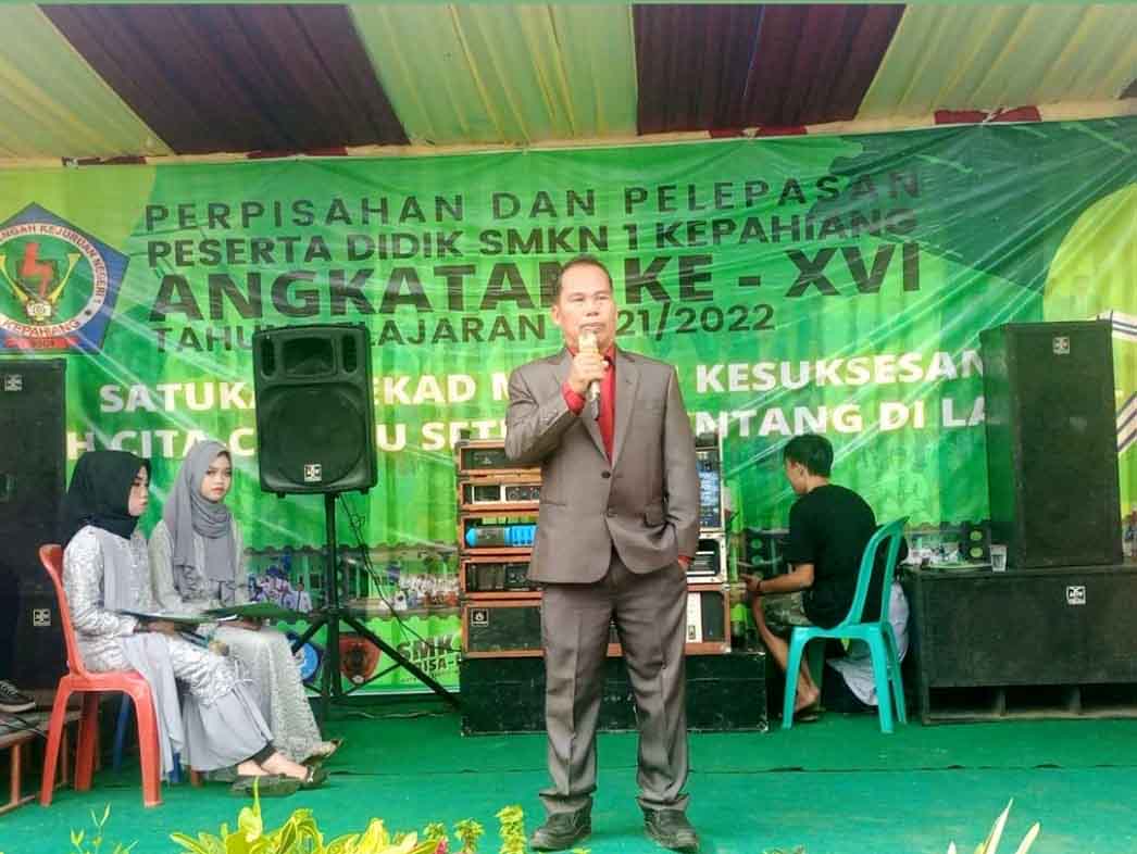 Jon Kariawan sebagai Kepala Sekolah SMK N 01 Kepahiang menyampaikan kata sambutan Mengatakan, “Para Siswa dan Siswi nantinya akan kembali ke orang tua dan masyarakat sebagai sosok pribadi yang lebih melanjutkan ke Pendidikan yang lebih tinggi yang di jelas kan oleh Jon karyawan sebagai kepala sekolah (Erlan)