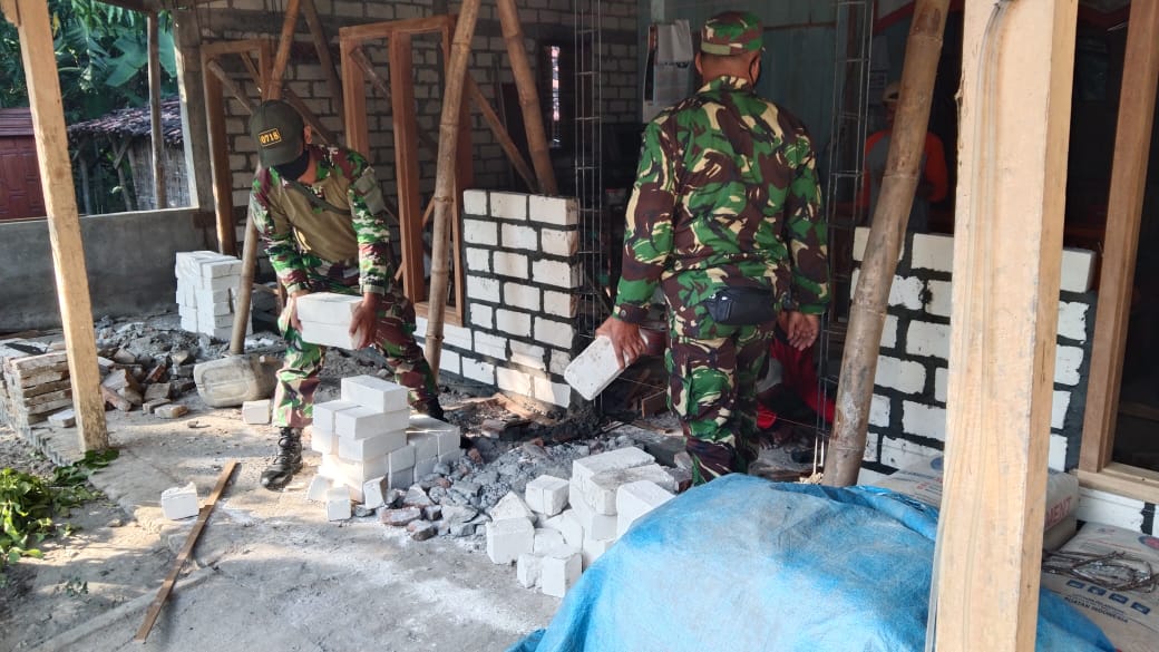 Pati – Pelaksanaan TNI Manunggal Membangun Desa (TMMD) Reguler Ke-111 Kodim 0718/Pati hari ini baru memasuki hari ketiga. Salah satu kegiatan fisik program TNI Manunggal Membangun Desa (TMMD) Reguler Ke-111 TA. 2021 adalah pembangunan Rumah Tidak Layak Huni (RTLH) bagi warga kurang mampu di Desa Tamansari, Kecamatan Jaken, Kabupaten Pati, Kamis (17/6/2021).