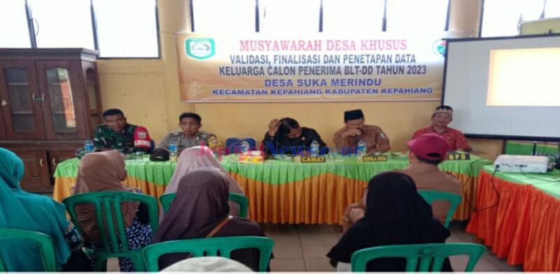 “Sebanyak 35 KPM bantuan langsung tunai dana desa yang sudah di validasi, finalisasi melalui musyawarah Desa khusus (Musdesus) pemerintah Desa (Pemdes) sepakat menetapkan calon penerima bantuan langsung tunai dana desa (BLT-DD) TA 2023,” Tutur Saepudin Juhri kepala desa suka merindu