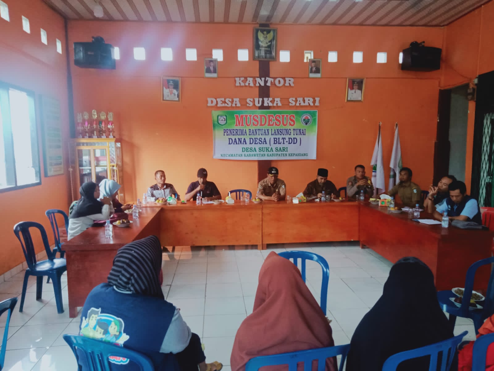 KEPAHIANG, jurnalisbengkulu.com – Pemerintah Desa Suka Sari Kecamatan Kabawetan Kabupaten Kepahiang hari ini, Senin (30/01/2023) Di Balai Desa menggelar Musdesus Calon Penerima BLT DD Tahun Anggaran 2023.