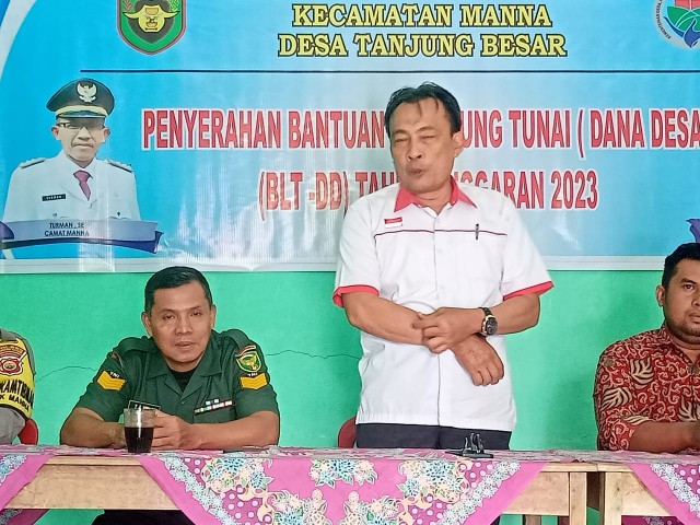 Bengkulu Selatan, jurnalisbengkulu.com – Pemerintah Desa Tanjung Besa Kecamatan Manna Kabupaten Bengkulu Selatan membagikan Bantuan Langsung Tunai yang bersumber dari Dana Desa ( BLT DD) di Aula Balai Desa (15/03/2023).