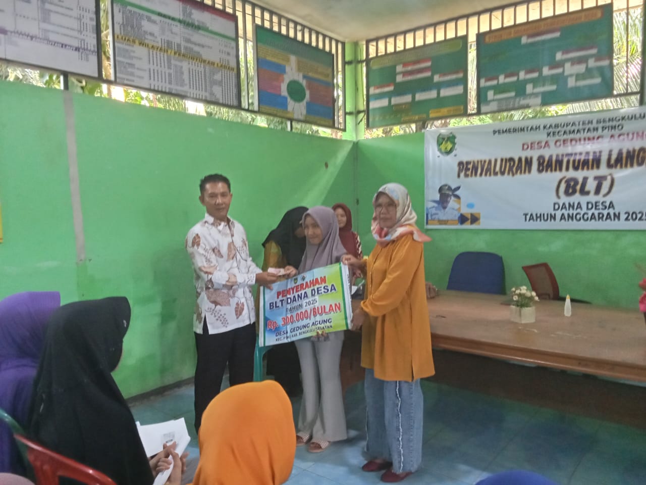 Acara pembagian Bantuan dilangsungkan di Aula kantor Desa Gedung Agung kecamatan Pino Kabupaten Bengkulu Selatan, (27/03/2025).
