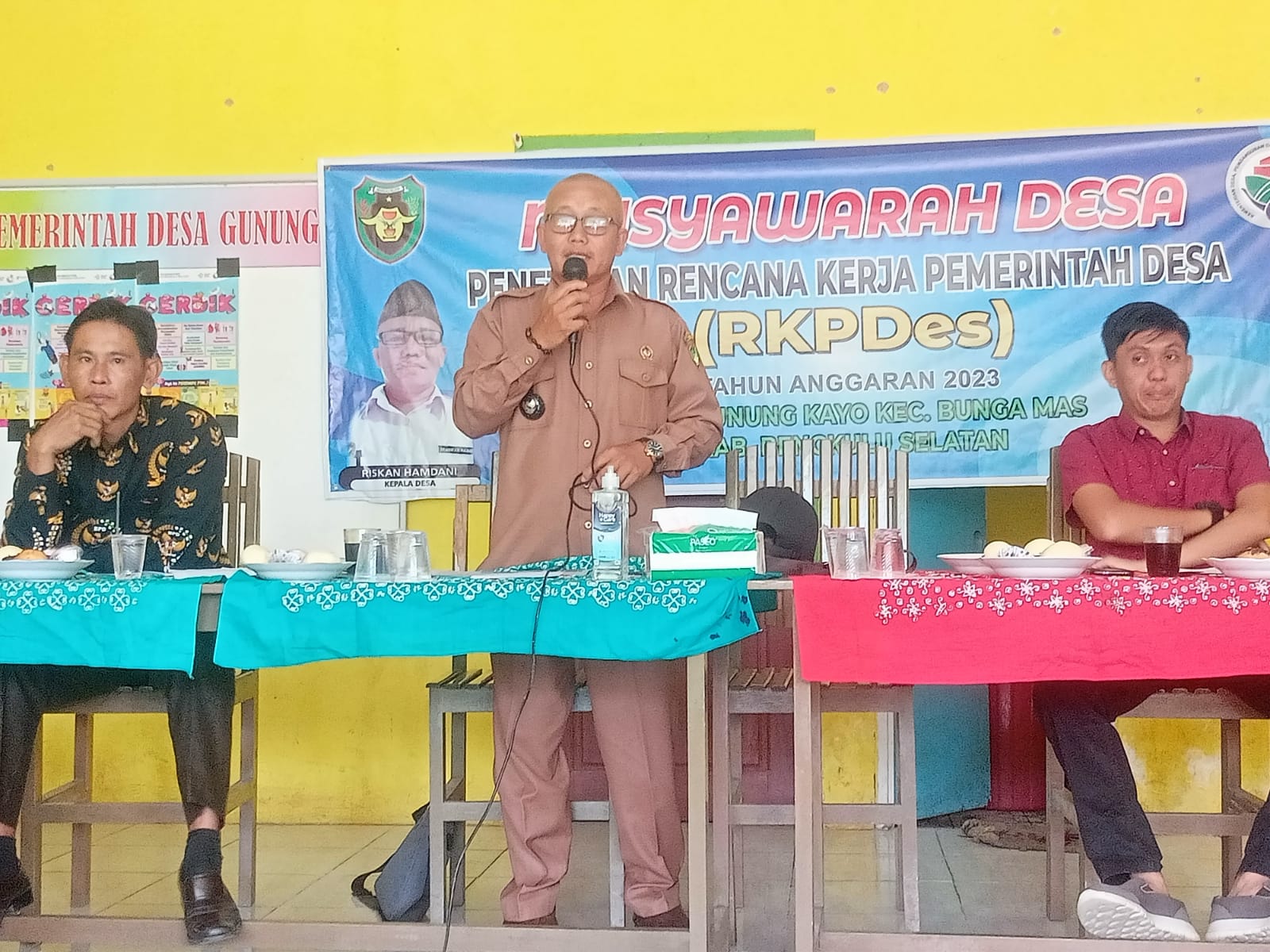 Dalam sambutannya Kepala Desa Gunung Kayo Riskan Hamdani menyampaikan ucapan terima kasih kepada semua warga Desa Gunung Kayo atas kehadirannya di dalam ruangan musyawarah ini, mengingat bahwa acara ini sangat penting untuk mendapatkan hasil kesepakatan bersama antara Pemerintah Desa dan Masyarakat itu sendiri.