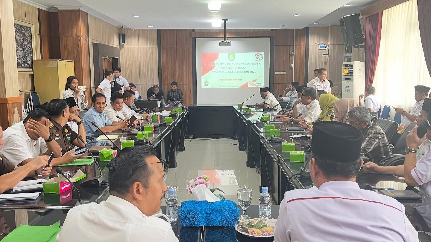 Penjabat Sekretaris Daerah Provinsi Bengkulu, Herwan Antoni, saat memimpin rapat persiapan pelaksanaan program di Kantor Gubernur Bengkulu, Rabu (5/11), menyampaikan bahwa keberadaan Jaksa Garda Desa bukan hanya berfungsi sebagai pengawasan hukum, tetapi juga pendampingan terhadap seluruh proses pembangunan desa.