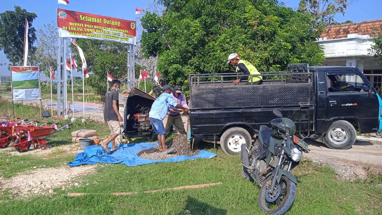 Saat ini yang dapat kita lakukan adalah dengan melakukan pengiriman material berupa Batu Kali,batu kricak serta pasir ”ujar Puryono.