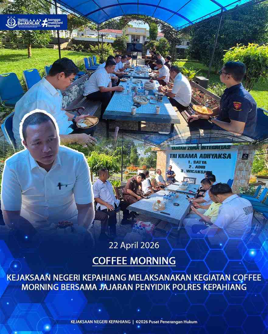 Kepahiang, Jurnalisbengkulu.com – Dalam suasana santai namun penuh makna, Kejaksaan Negeri Kepahiang menggelar kegiatan coffee morning bersama jajaran penyidik Polres Kepahiang, Rabu (22/04/2026).