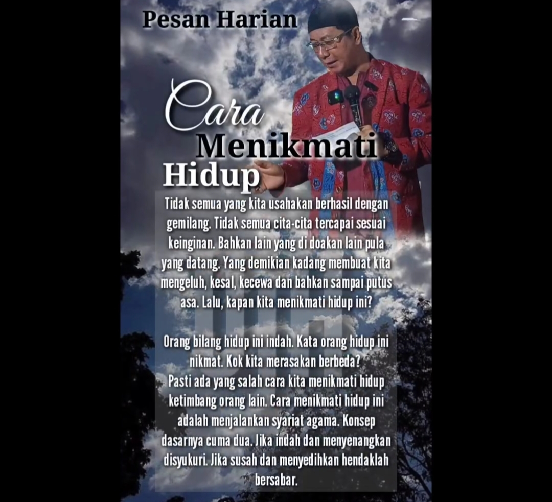 Tidak semua yang kita usahakan berhasil dengan gemilang. Tidak semua cita-cita tercapai sesuai keinginan. Bahkan lain yang di doakan lain pula yang datang. Yang demikian kadang membuat kita mengeluh, kesal, kecewa dan bahkan sampai putus asa. Lalu, kapan kita menikmati hidup ini?