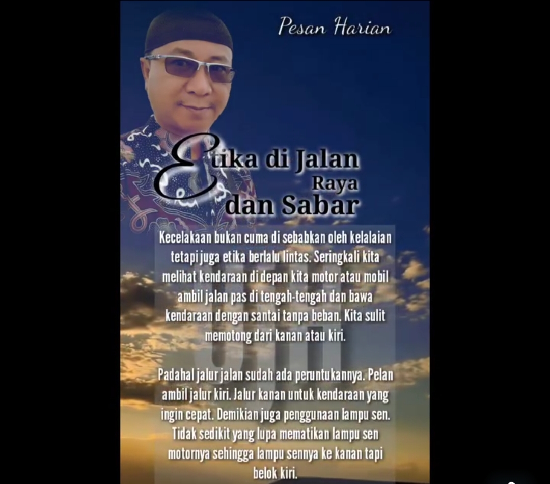 Kecelakaan bukan cuma di sebabkan oleh kelalaian tetapi juga etika berlalu lintas. Seringkali kita melihat kendaraan di depan kita motor atau mobil ambil jalan pas di tengah-tengah dan bawa kendaraan dengan santai tanpa beban. Kita sulit memotong dari kanan atau kiri.