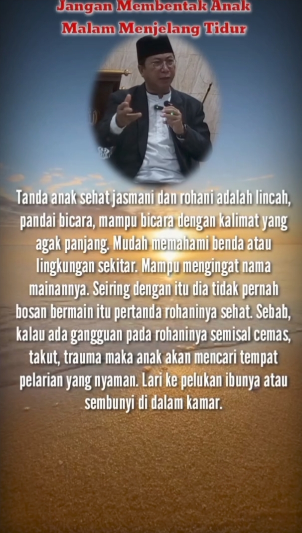 Lalu, bagaimana kalau anak rewel menjelang tidur? Biasanya itu karena butuh perhatian, masih betah bermain, butuh teman dan cari perhatian. Sementara orang tuanya mengajak dan mau istirahat. Solusinya anak dipaksa, dimarah bahkan dibentak? Tahu gak resikonya? Dari sebuah tulisan dikatakan bahwa sangat dilarang untuk memarahi anak menjelang dia tidur karena alam bawah sadarnya akan memblacklist sosok yang membuatnya sedih /takut. Artinya rusak otak dan jiwa anak tersebut. Jangan bilang sayang pada anak kalau tidak paham jiwa anak. Sabda Rasulullah,