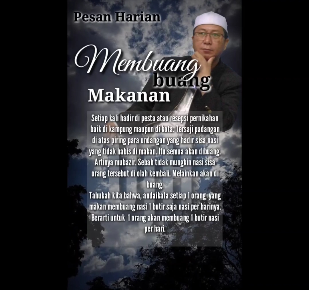 Setiap kali hadir di pesta atau resepsi pernikahan baik di kampung maupun di kota. Tersaji padangan di atas piring para undangan yang hadir sisa nasi yang tidak habis di makan. Itu semua akan dibuang. Artinya mubazir. Sebab tidak mungkin nasi sisa orang tersebut di olah kembali. Melainkan akan di buang.