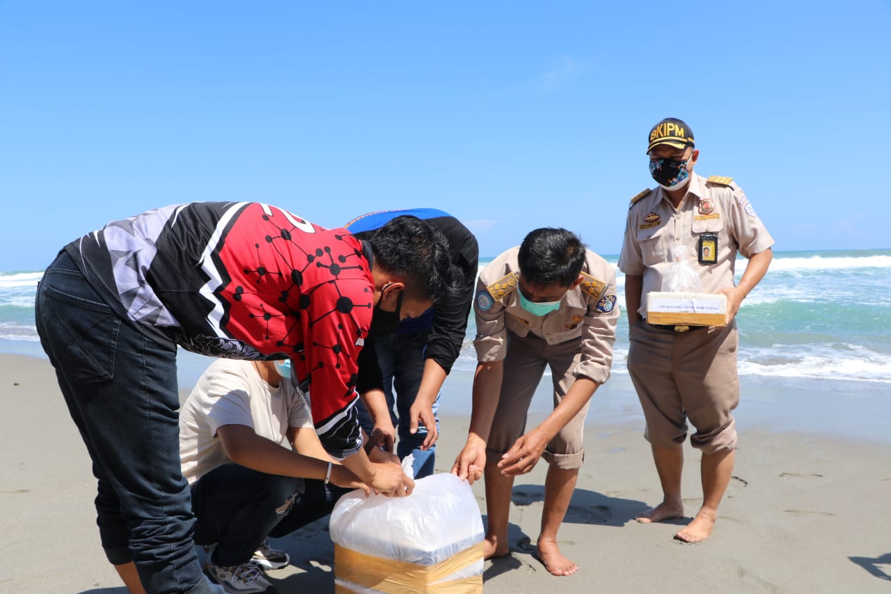 Guna menjaga 4.335 baby lobster agar tetap hidup dan berkembang, tim gabungan yang polairud polda bengkulu dan BKIPM bengkulu lamgsung melepasliarkan kembali 4.335 ekor baby lobster di kawasan pantai teluk sepang kota bengkulu.