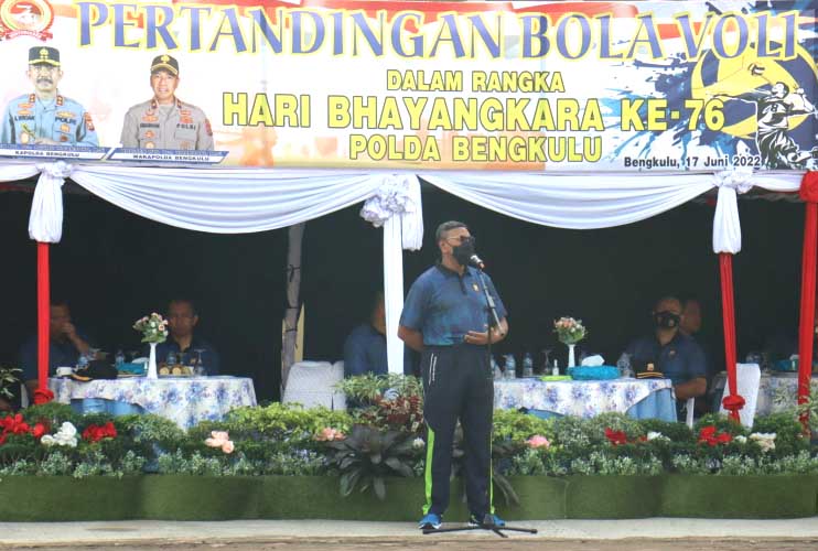 Bengkulu, jurnalisbengkulu.com– Ditandai dengan pemukulan bola pertama oleh Wakapolda Bengkulu Brigjen Pol Drs Umardani, M.Si, secara resmi membuka perlombaan Bola Voly yang digelar dalam rangka Hari Bhayangkara ke-76 tahun 2022 pagi ini Jumat (17/06).